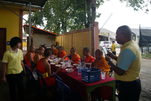 พระครูปริยัติพัฒนกิตติ์ ผู้จัดการโรงเรียนวัดบ้านหม้อศึกษา เจ้าคณะอำเภอห้างฉัตร ได้มาถวายภัตตาหารเพล
