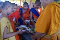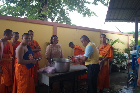 พระครูปริยัติพัฒนกิตติ์ ผู้จัดการโรงเรียนวัดบ้านหม้อศึกษา เจ้าคณะอำเภอห้างฉัตร ได้มาถวายภัตตาหารเพล