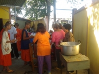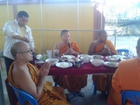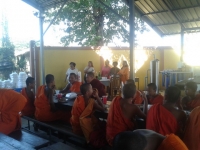 พระครูกิตติทัสนียากร รองผู้อำนวยการ เลี้ยงเพลนักเรียน โรงเรียนวัดบ้านหม้อศึกษา เนื่องในวันคล้ายวันเก