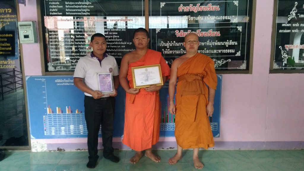 โรงเรียนวัดบ้านหม้อศึกษาแสดงความยินดีกับสามเณร ชูเกียรติ วันแว่น ได้รับรางวัลชนะเลิศอันดับที่ 5 ในกา