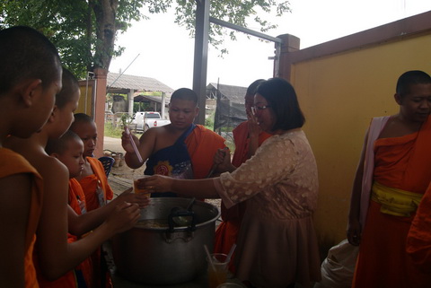 พระครูปริยัติพัฒนกิตติ์ ผู้จัดการโรงเรียนวัดบ้านหม้อศึกษา เจ้าคณะอำเภอห้างฉัตร ได้มาถวายภัตตาหารเพล