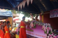 พระครูปริยัติ์พัฒนกิตติ์ เจ้าคณะอำเภอห้างฉัตร ผู้จัดการโรงเรียนวัดบ้านหม้อศึกษา ได้มาถวายภัตตาหารเพล